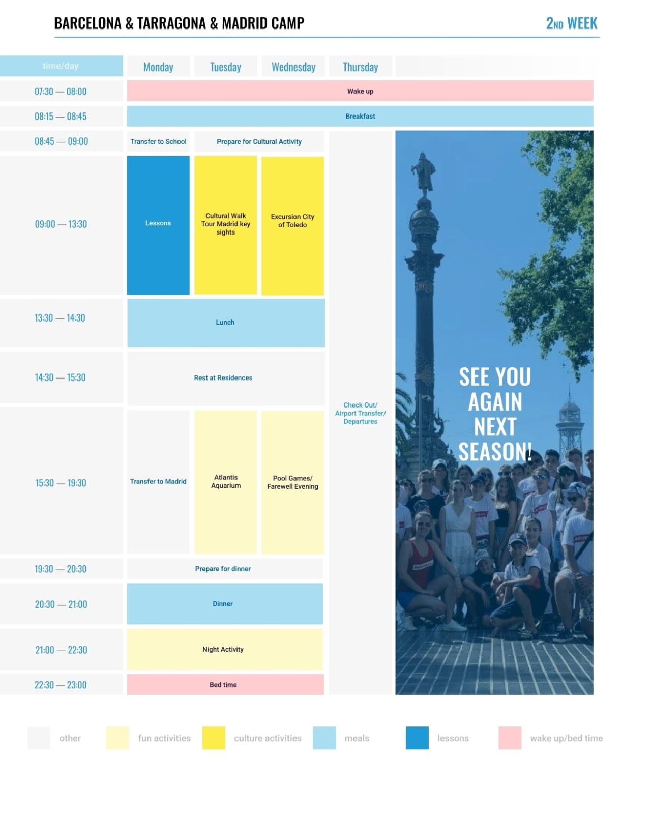 İspaniyanın paytaxt düşərgəsi tələbələri qlobal gələcəyə hazırlaşmağa təşviq edir. Robot texnikası, yaradıcılıq fəaliyyətləri, debatlar və sahibkarlıq kimi dərslərlə yanaşı idman və açıq havada əylənmək kimi yeni bacarıqları inkişaf etdirmək imkanı yaradır.